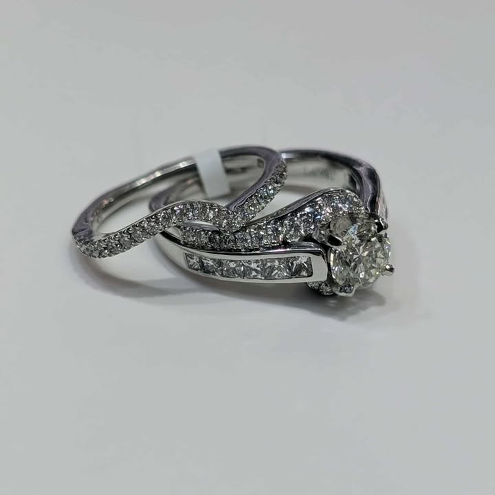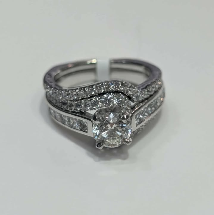 Total Carat Weight: 2.50 CT.T.W Center Stone: Round-cut Diamond (1CT) Accent Stones: Round-cut Diamond (1.50 CT.T.W.) Metal: 18k White Gold Feature: Euro Shank Diamond Band included